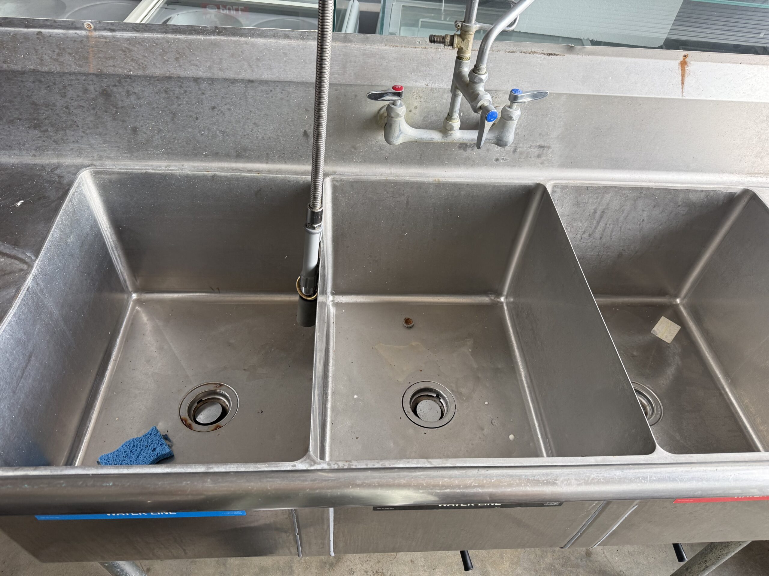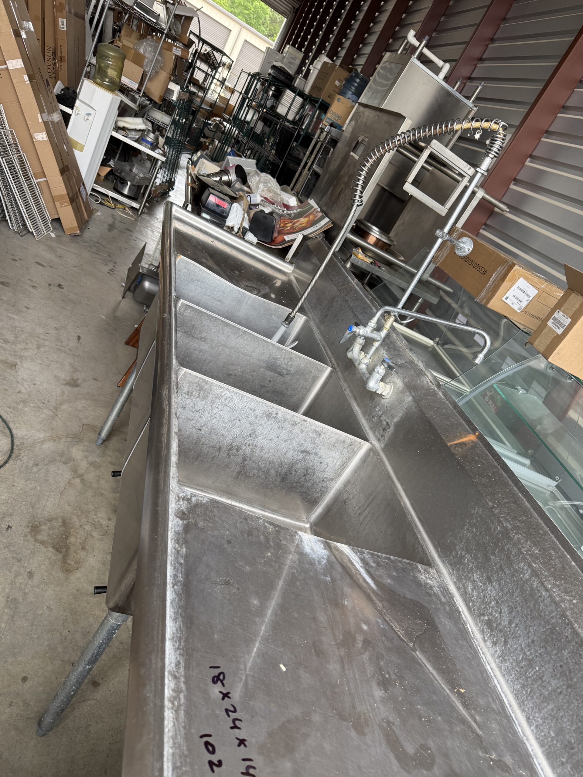 3 COMPARTMENT SINK 102”X28” USED WITH SPRINKLER SYSTEM