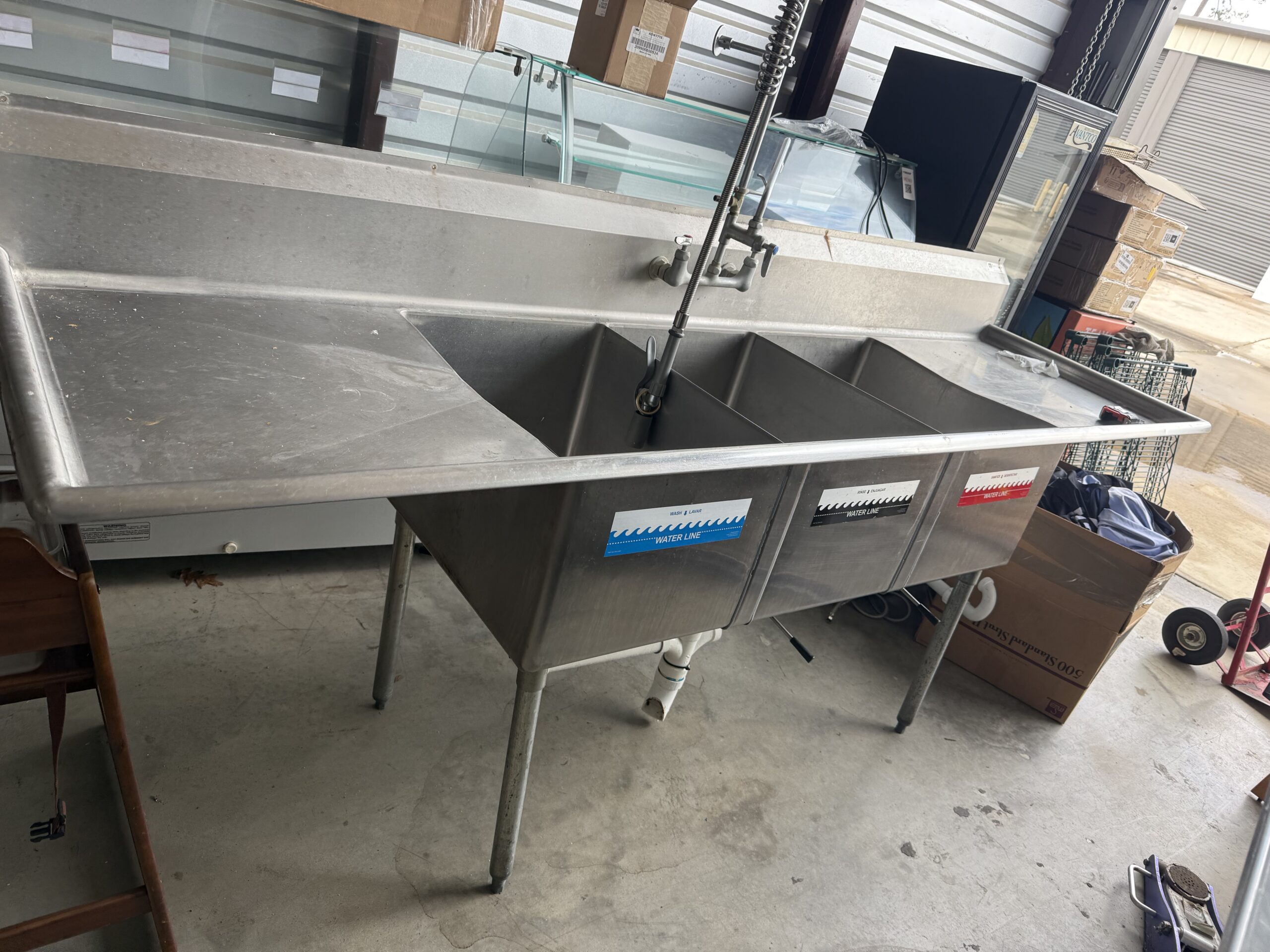 3 COMPARTMENT SINK 102”X28” USED