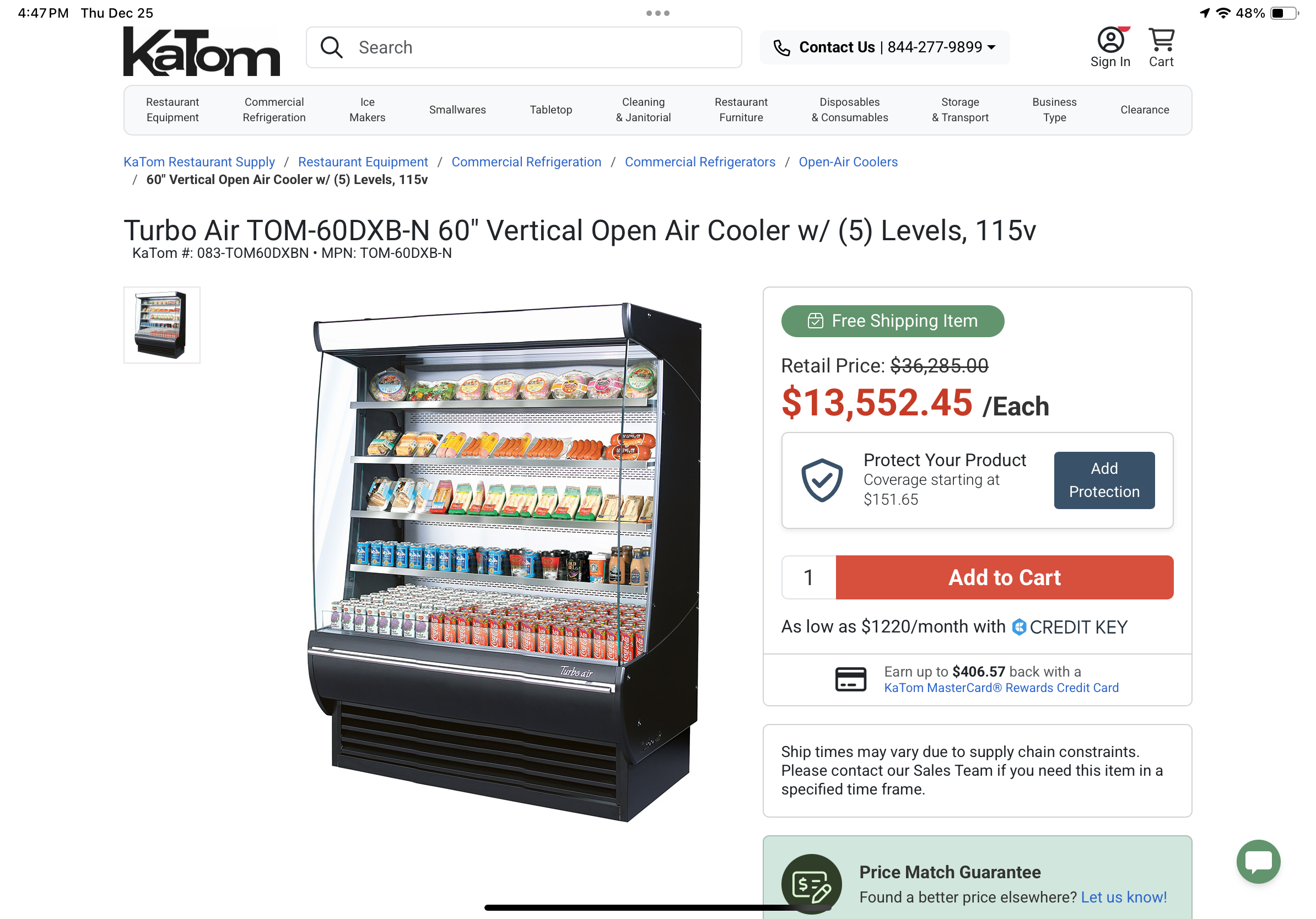 TURBO AIR 60” VERTICAL GRAB & GO COOLER DISPLAY