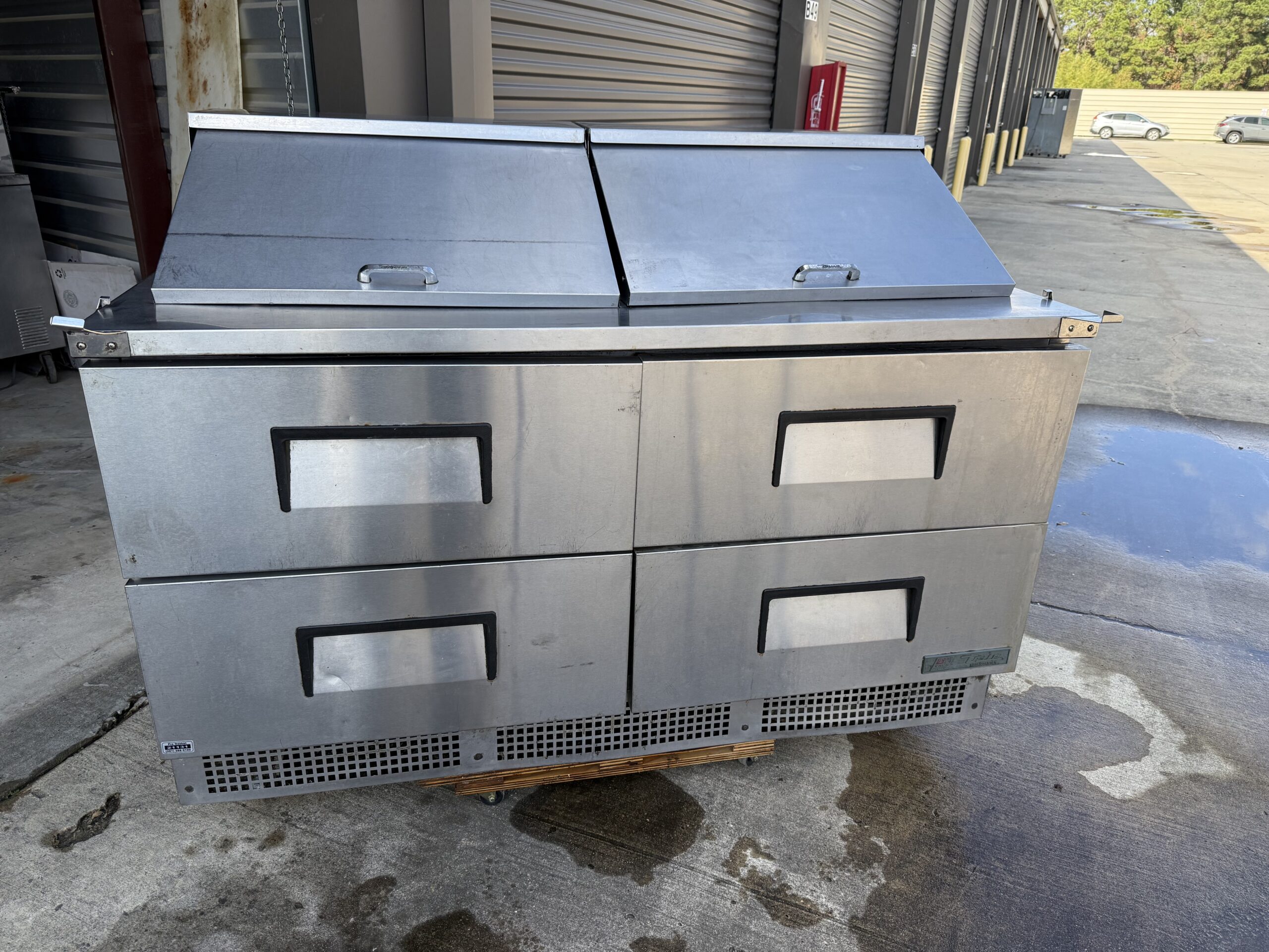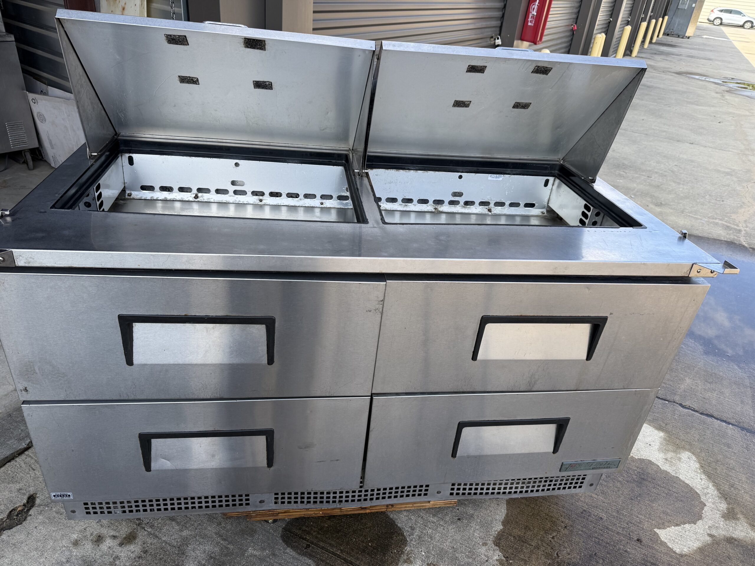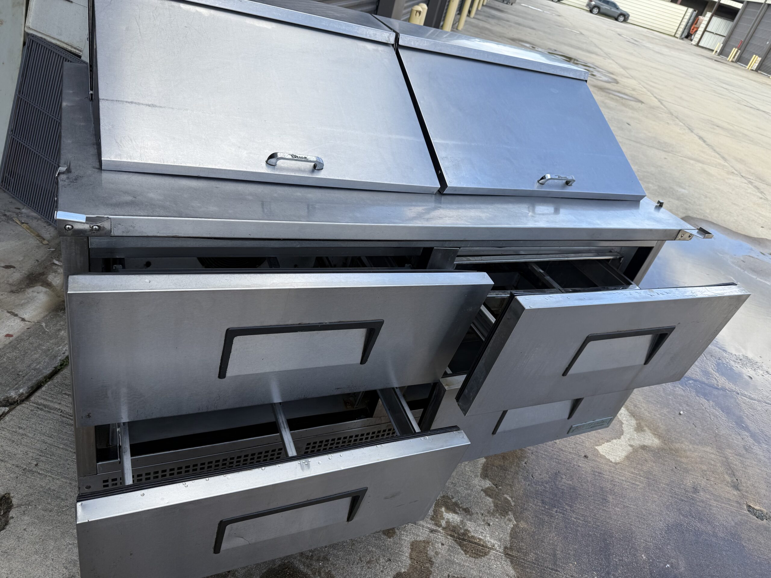 60” TRUE SANDWICH PREP-TABLE WITH CASTERS.